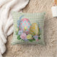 Flores de aquarelas e ovos de Páscoa coloridos com padrão de gingham verde e branco