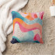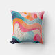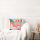 Design colorido e vibrante de um padrão abstrato, que tem espirais, formas e pontos em cores de rosa, laranja, verde, amarelo, branco e preto. O padrão está em ambos os lados do travesseiro.