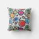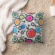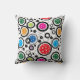 Travesseiro decorativo com almôndegas coloridas e círculos pretos em fundo branco. Perfeito como presente para um jogador de picleball em moda. Feliz visto e melhores votos para os seus futuros jogos!