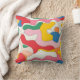 Um padrão de abstrato vibrante com formas irregulares em vermelho, verde, amarelo, azul, rosa e branco.