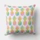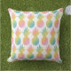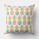 Design de travesseiro de estilo tropical apresenta um padrão de ananás coloridos do arco-íris pastel com um aspecto de gradiente de coloração aquosa de gravata. Tchique para sua casa de praia de férias ou decoração de casa de verão. Tecidos para travesseiros exteriores e interiores disponíveis.