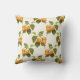 Um travesseiro com um padrão de 3 damascos laranja acoplados a um galho com folhas verdes. Desenho de aquarela em estilo botânico antigo.