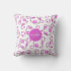 Este travesseiro decorativo esportivo, mas feminino, de futebol apresenta um padrão aleatório de bolas de futebol de estilo tradicional, cor-de-rosa e branca - o fundo branco é personalizável - personalize com seu nome e monograma em um pendante de círculo rosa - coordenado por katz_d_zynes