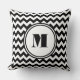Travesseiro decorativo De Padrão De Chevon Branco E Preto De Monograma Moderno.