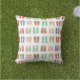 Este travesseiro apresenta um padrão de chinelos de praia coloridos. A impressão está em ambos os lados do travesseiro.