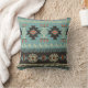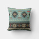 O travesseiro decorativo de padrões inspirado no cobertor nativo americano/tribal apresenta designs geométricos. Paleta: marrom, laranja, azul-céu e branco creme.