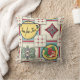 Sempre que vislumbro uma cortina ou avental da década de 1940 num mercado de flores, encontro os cheiros reconfortantes e a sensação de que a cozinha da vovó me inundou. Tão agradável, eu queria compartilhar a experiência ao criar a aparência e a sensação em novos tecidos e produtos para decoração de casas. O design neste travesseiro decorativo amoroso empresta seu esquema de cores de um tema de cozinha amarelo-borboleta, aqua macio, marfim e carmim vermelho de uma mesa de 1940.