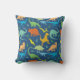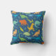 Padrão de silhueta colorida do dinossauro. Tyrannosaurus Rex, titanossauros, Tricerátopo, raptores, Ankylosaurs, Dino-Birds, Stegosaurus, Apatosaurus, Pteranodon e mais num padrão colorido em fundo azul, e dinossauros em verde, azul, amarelo e laranja.