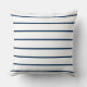 O travesseiro decorativo design de quadrado moderno apresenta um padrão simples e na moda horizontal listrado com faixas largas em faixas brancas clássicas e finas em uma cor azul-marinho de tendência. Nota, as cores podem ser personalizadas para coordenar com o decorador doméstico.