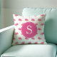 Este travesseiro decorativo apresenta a minha mão original pintada de cor d'água rosa com flamingo trabalho de arte num padrão único. Seu monograma ou inicial é definido em uma fonte serif moderna e enquadrado por uma cor rosa sólida. Você pode alterar a cor sólida para qualquer cor que desejar, selecionando o botão "personalizar". Decoração tropical perfeita para quartos e salas de estar. Para ver os presentes de decoração e feriados correspondentes, visite o VG Invites em www.zazzle.com/dotellabelle
