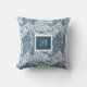 O elegante padrão das folhas tropicais modernas em travesseiros decorativos de impressão branco e azul ardósia acentuou-se com os seus monogramas. Escolha entre 3 tamanhos. Correspondência entre cobrir de edredão e outros itens em nossa loja.