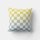 O gradiente amarelo moderno a azul claro e o padrão branco marcado adicionam um sotaque colorido ao seu decor. Os quadrados coloridos mudam gradualmente de amarelo brilhante para azul-cerulano próximo aos quadrados brancos. Para ver o design de ombré geométrico em outros itens, clique no link "Artes Rocklawn". © Claire E. Skinner, Todos Os Direitos Reservados.
