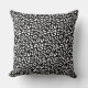 Design de travesseiro decorativo quadrado moderno e chic apresenta um padrão de impressão de animais de tendências e na moda de manchas brancas-leopardo ou guepardas. Nota, a cor preta de fundo pode ser modificada para coordenar com a decoração inicial.