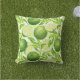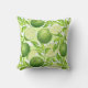 Este divertido travesseiro ao ar livre apresenta um padrão de cor d'água de limões verdes em um fundo listrado.