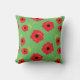 Um design delicioso mostrando papoilas vermelhas arrojadas com centros pretos colocados contra um fundo verde fresco de bolinhas. O contraste vivo e o arranjo lúdico criam uma estética alegre e atraente.