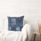 Um travesseiro decorativo de padrão de retalhamento indigo sem soldadura com detalhes florais e quadrados de xadrez texturizados. A mistura de blues denim, flores delicadas e texturas costura cria uma estética boho aconchegante.