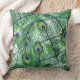 Imagens de penas de pavão em tons de verde azul, ouro e azul real são sobrepostas e agrupadas para formar um padrão interessante neste travesseiro decorativo. Muito atraente em uma multidão de decores caseiros. Ambos os lados do travesseiro têm o mesmo design. Certifique-se de ver os produtos coordenadores em nossa loja.
