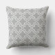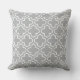 O travesseiro na moda apresenta um moderno padrão decorativo marroquino de quatrefoil em branco. Personalize o plano de fundo da cinza para coordenar com a decoração externa.