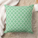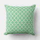 Design de travesseiro de sotaque quadrado apresenta um padrão quatrefoil marroquino na moda gráfico. As cores são brancas e verde-menta