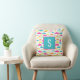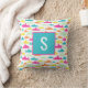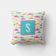 Travesseiro simples, mas doce, de padrão de tubarão em aqua, rosa, laranja, amarelo e verde-menta com monograma inicial.