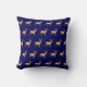Padrão de silhueta de renas de ouro no Travesseiro decorativo azul marinho.