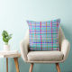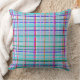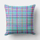 travesseiro decorativo na moda com padrão de listras verificado, listras multicores no travesseiro azul. Projetado com um sorriso por Iolantesdesigns:-)!