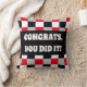 Um tabuleiro de xadrez colorido editável ou padrão gingham, e um modelo de texto dizendo: Parabéns, você fez isso. Para personalizar o texto, clique em personalizar e alterar o texto, se desejar, e para editar o padrão, clique em editar design e escolha até 4 cores. Sinta-se à vontade para pedir ajuda ao design. Você também pode comprar-la como está.