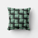 Travesseiro com um padrão verde e branco de traçados de pincel de abstrato.