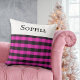 Uma almofada de travesseiro na moda para uma cama, cadeira ou sofá. O travesseiro decorativo bonito tem um padrão de design de xadrez de búfalo em rosa e preto. Personalize com um nome em letras maiúsculas pretas na parte superior do painel branco. A almofada com padrão de cheque faz um presente elegante no Natal e durante todo o ano.