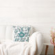 Este travesseiro decorativo de vôlei giro para raparigas apresenta um padrão aleatoriamente organizado de chaleiras, cinzas e volichões brancos em diferentes tamanhos virados de cada forma num fundo branco - os painéis de vôlei de téal e cinza são misturados com um padrão floral feminino artístico - o nome do jogador e o número da camisola são personalizáveis - por katz_d_zynes