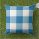 O design travesseiro apresenta uma xadrez de gingham/padrão de verificação casual que é perfeito para o verão! Nota, você pode personalizar a cor azul cobalto de fundo para coordenar com a decoração ao ar livre.