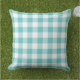 O design travesseiro apresenta uma xadrez de gingham/padrão de verificação casual que é perfeito para o verão! Nota, você pode personalizar a cor azul-azul-turquesa / aqua para coordenar com a decoração ao ar livre.