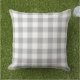 O design travesseiro apresenta uma xadrez de gingham/padrão de verificação casual que é perfeito para o verão! Nota, você pode personalizar a cor de fundo da cinza para coordenar com a decoração ao ar livre.