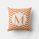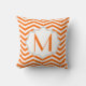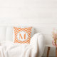 Travesseiro decorativo de sotaque de cor laranja, branco chevron zigzag, lança/sotaque com monograma numa moldura de cinza.