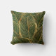 Almofada Padrão Elegante Verde de Folhas Douradas