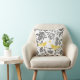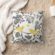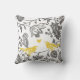 Almofada Padrão Floral de Pássaros Amarelo Cinza e Branco n