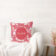 Creme e flores vermelhas em um padrão floral floreal flagrante com espaço para um nome de outro texto personalizado, se desejado. Este lindo design floral floral é elegante e bonito. O padrão floral composto por variações de muitas flores, pequenas e grandes, muitas pétalas, ou apenas algumas, pétalas pontas afiadas ou arredondadas. A cor de fundo deste travesseiro floral é um creme escuro vermelho. O espaço para adicionar seu próprio nome está em um círculo. O design de flores é repetido tanto na frente quanto no verso.