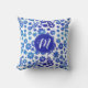 Almofada Padrão Floral e Monograma Desenhado à Mão Azul na