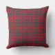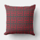 Travesseiro decorativo preto e vermelho com padrão geométrico elegante.