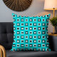 Este design de na moda apresenta um padrão geométrico moderno de quadros brancos e pretos sobre um fundo turquesa. #geométrico #quadrado #moderno #trendy #trending #style #na moda #design #designer #popular #fashion #travesseiro #throwpillow #home #decor #homedecor #office #work #gifts