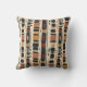 Almofada de lançamento de padrão geométrico terroso inspirada em tecidos tribais de barro, apresentando retângulos pintados à mão, diamantes e triângulos em preto carvão e terracota em um fundo bege texturizado. Um design boho quente ideal para amantes de decoração rústica, fãs de estilo artesanal e qualquer pessoa atraída por estética geométrica terrosa.