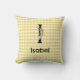 Travesseiro decorativo inicial de gingham de uma flor de aquarela monograma. Letra I