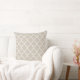 Travesseiro de sotaque quadrado moderno apresenta um elegante padrão quatrefoil marroquino em cores brancas e bege neutro. Nota, a cor de fundo pode ser modificada para coordenar com a decoração inicial.