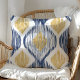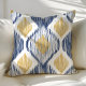 Almofada Padrão Ogee Ikat Dourado e Marinho