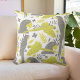 Iluminando Cinzas Amarelas e Ultimas Ara Travesseiro de Padrões Tropicais. Folhas e flores tropicais e de arara desenhadas à mão, em amarelo-modesto e em cores de cinza.
