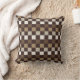 Um padrão xadrez com quadrados alternados em marrom escuro, marrom claro e bege, criando um senso de ritmo e profundidade visual.
