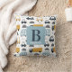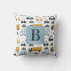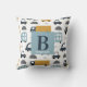 Linda e geométrica, monograma personalizável único e personalizável e Travesseiro de Bebê de Nome. Personalize com o nome do bebê e o monograma inicial. Padrão de veículo bonito com carro, barramento e caminhão em azul escuro, azul brilhante, ouro e cinza. Backside com Modelo de texto para uma mensagem pessoal. Um presente bonito e único para Chás de fraldas especialmente para meninos, presente de Natal, Presente de Aniversário. Um Travesseiro bonito para decorar o Nursery. Um presente único e especial para os pais que esperam ou para a sua casa.