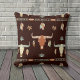 Nesse travesseiro está um atraente motivo tribal que apresenta crânios e penas de vaca. As imagens estão em tons de marrom, azul claro, bronzeado e ouro, e colocadas sobre um fundo preto escuro. Ambos os lados do travesseiro têm o mesmo design, que ajustado bem em um esquema de decoração ocidental ou nativo americano.