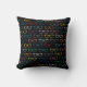 travesseiro decorativo preto e preto com uma cor escura com um padrão de óculos de hipster multicolorido em tons de azul, vermelho, rosa, verde, cinza, amarelo e roxo.