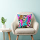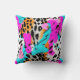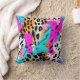 Belos impressões de pele de animais safari travesseiros decorativos em cores luminosas como neon, como fuchsia, azul brilhante - ciano.